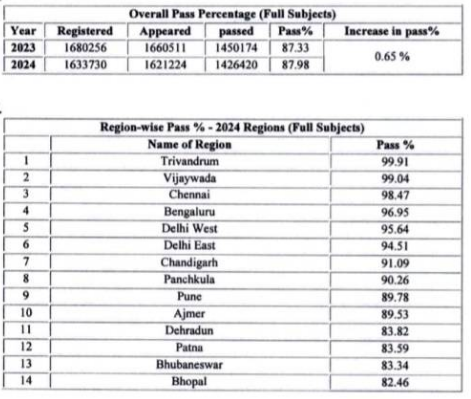 CBSE 12th Result 2024 name wise Link (Out): CBSE Senior School Certificate Examination 12th Arts, Commerce, & Science Result 2024 links have been released at https://cbseresults.nic.in. The CBSE 12th Result 2024 is now accessible using the roll number, school number, and admit card ID. A total 87.98% of students have passed the class 12th exam 2024.