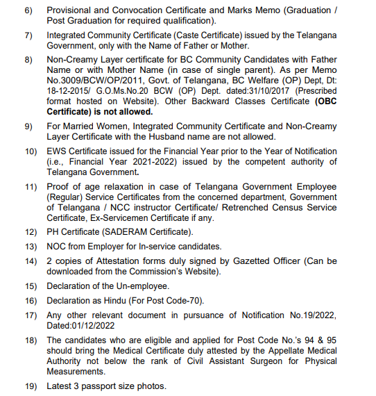 Documents Required for TSPSC group 4 certificate Verification 2024